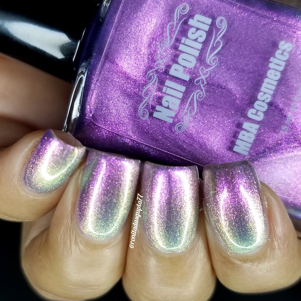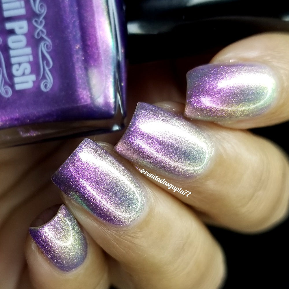 Rainbow Tutu is a bright and shimmery, glowy pinky-purple that shifts from purple to pink to green to gold