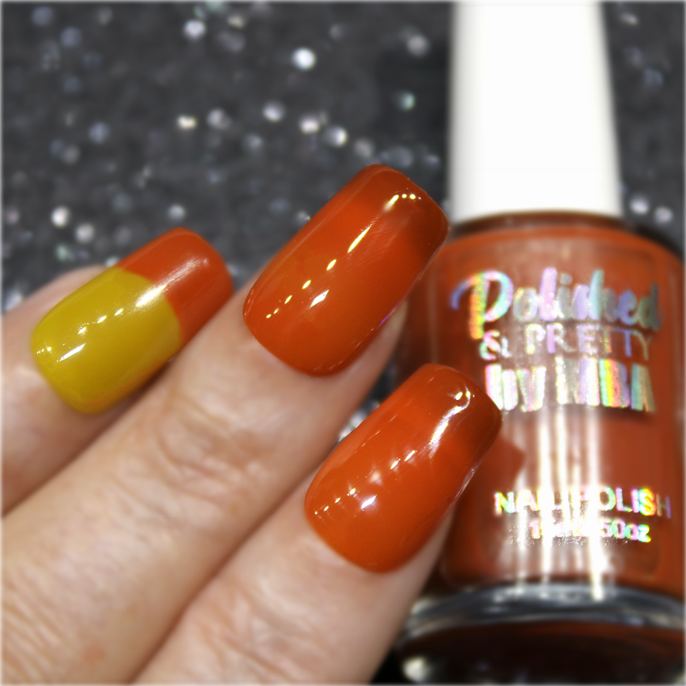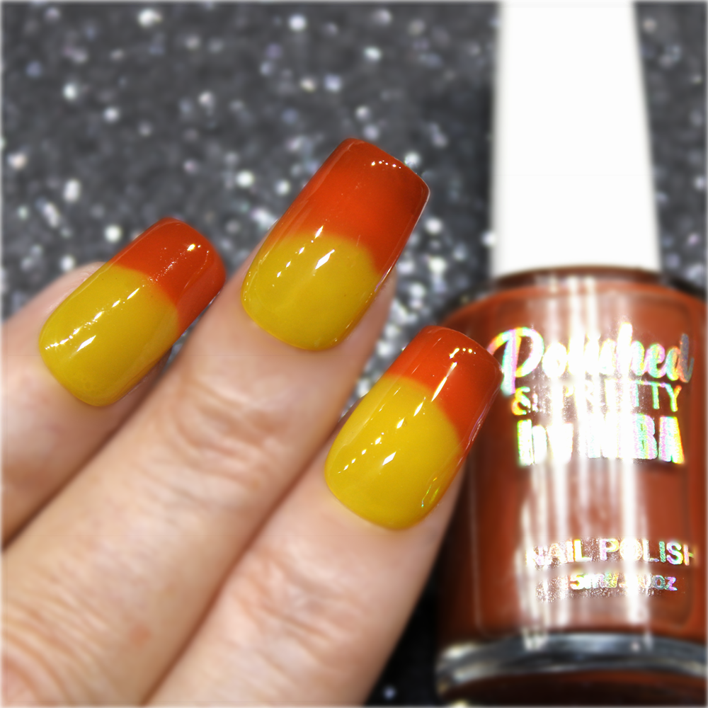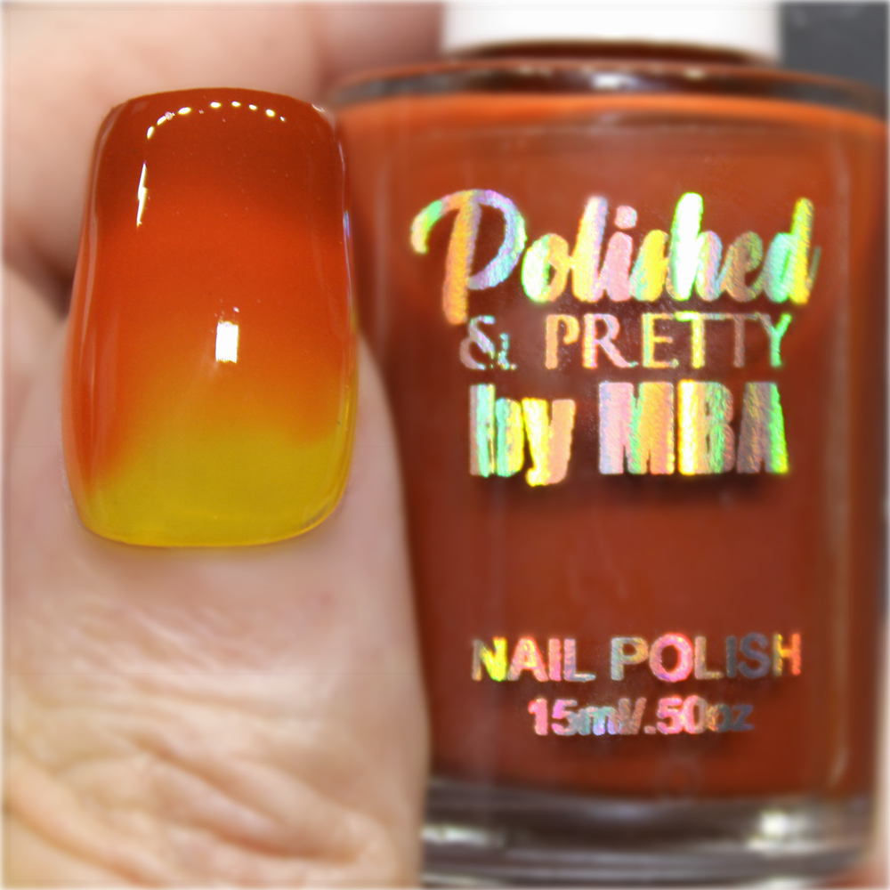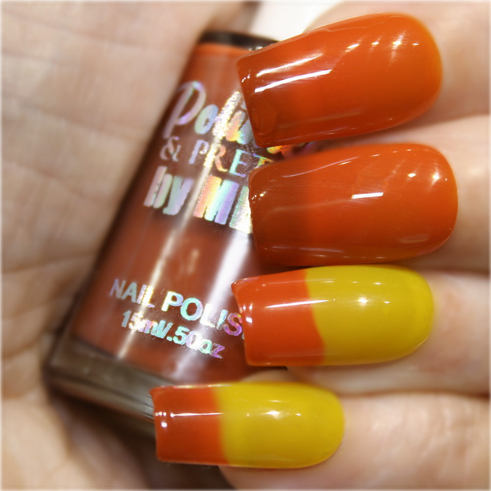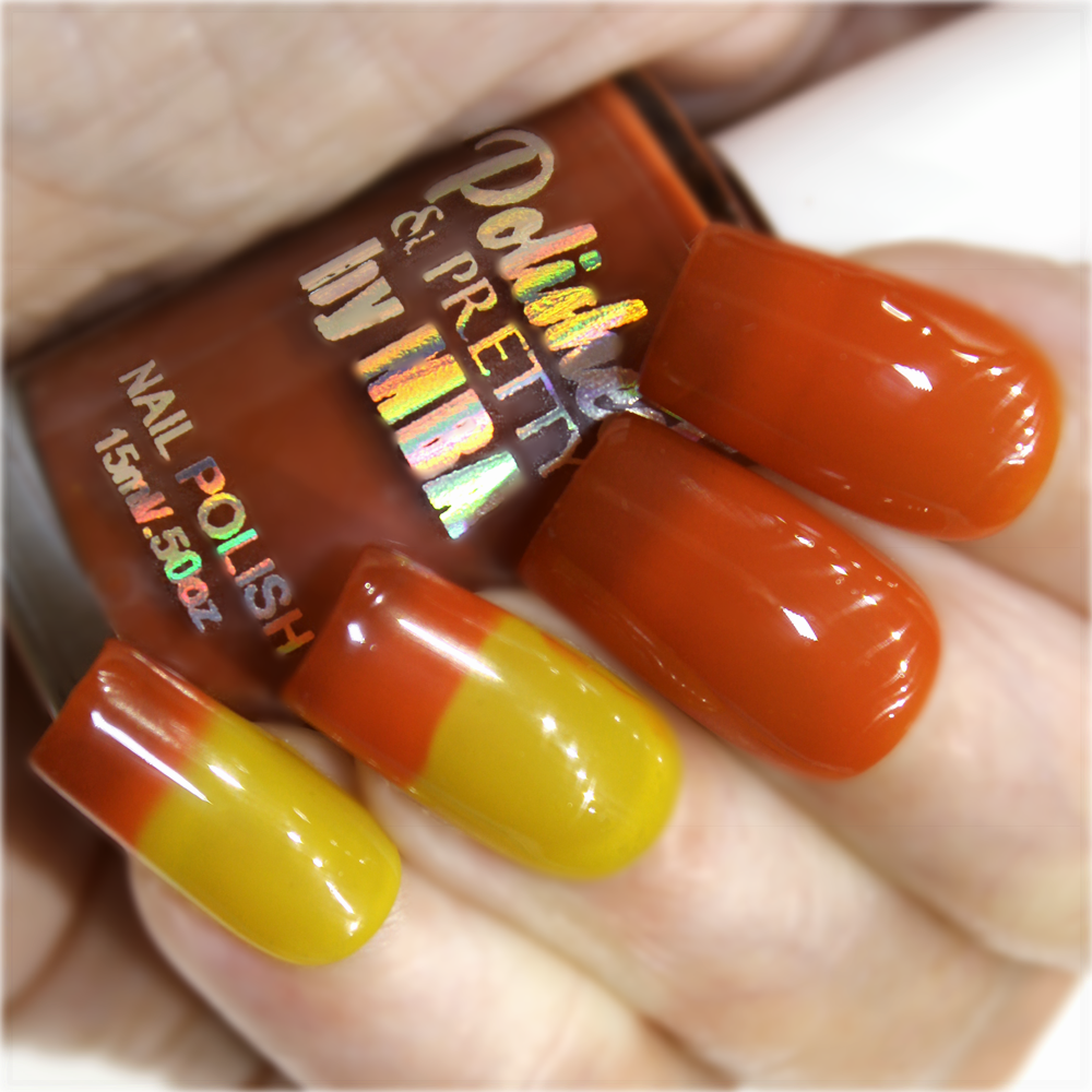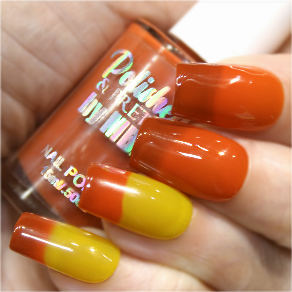 Retro Summer is a Tri-Thermal Nail polish that changes with temperature from Deep Spice Red (Cold) to Red-Orange (Warm) to Yellow (Very Warm).