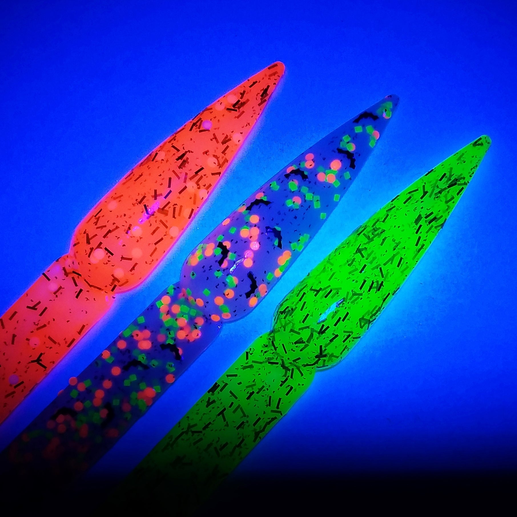 Deja-Boo Neon Black Light Reactive with black glitter slices and micro shreds
