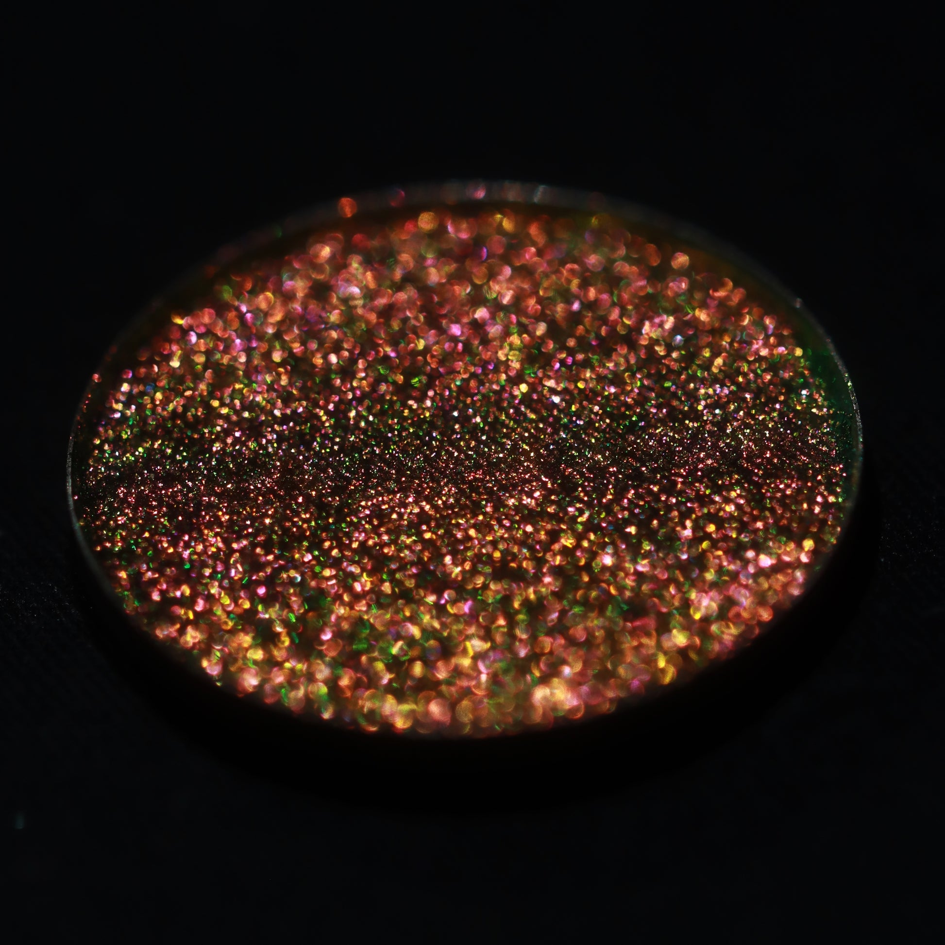 Multichromes shift various colors in different lighting situations. Our pictures are primarily taken in bright artificial light of a light tent. Whatever light you are in may pick up different variations and shifts of this color.