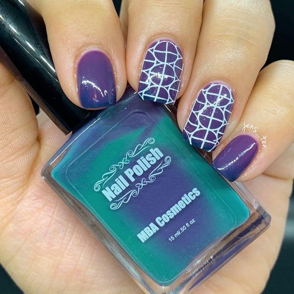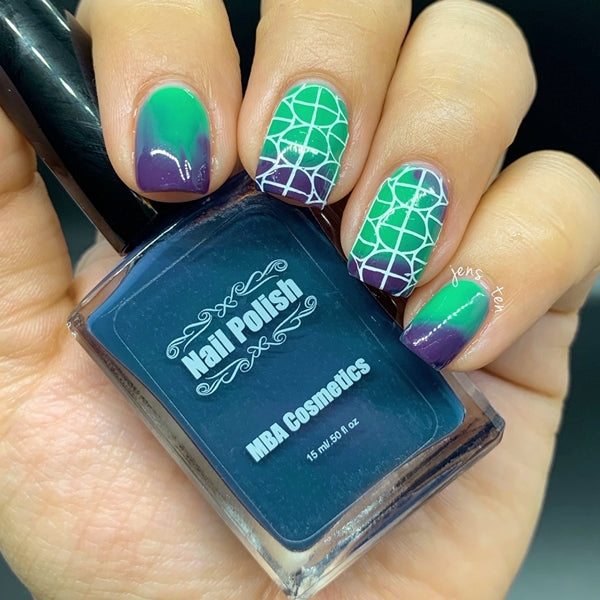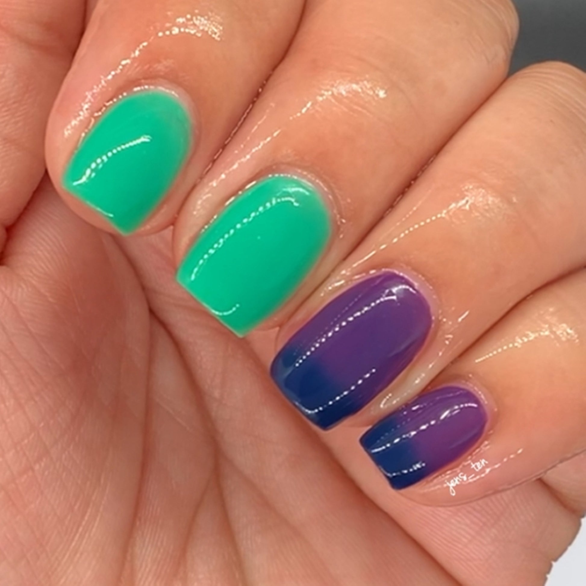 Neutron is a Tri Thermal Nail polish that changes with temperature. Neutron Changes from Green (Warm) to Purple (Normal) to Blue (Cold)